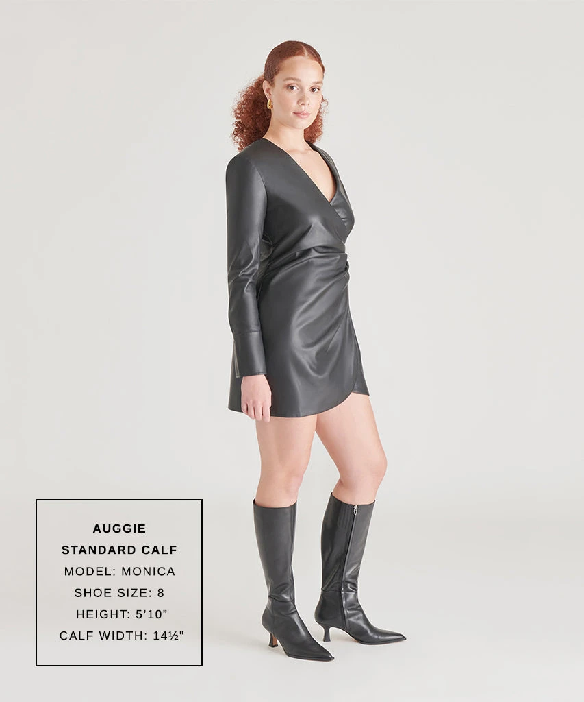 The epitome of wardrobe staple. There’s something undeniably timeless about AUGGIE’s sleek silhouette. Sustainably crafted in classic leather or rich suede, this knee-high heeled boot pairs well with warmer layers and sweater dresses.