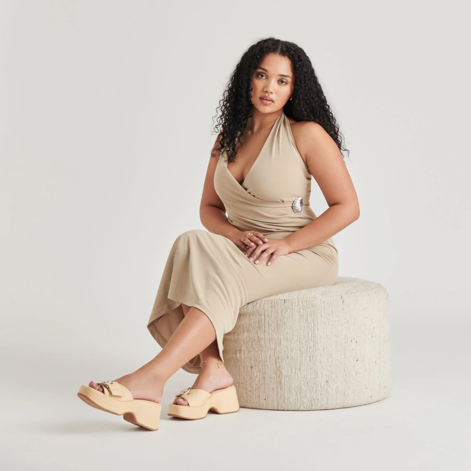 A platform heel and a chunky bold buckle is exactly what you need in a sandal this season. GISEL features a nostalgic shape reminiscent of the 90s and is made from recycled materials. Choose from fun textures like suede or raffia.