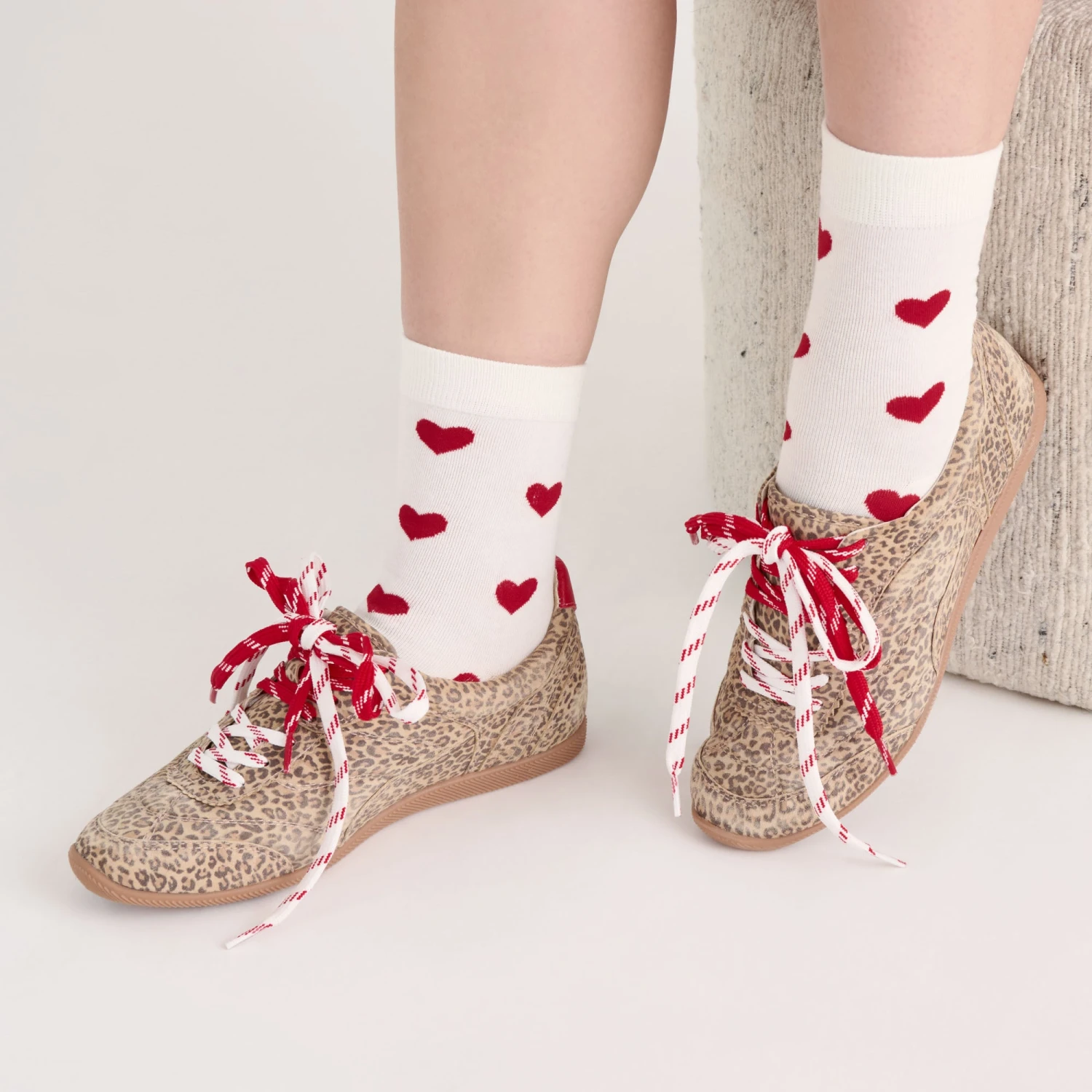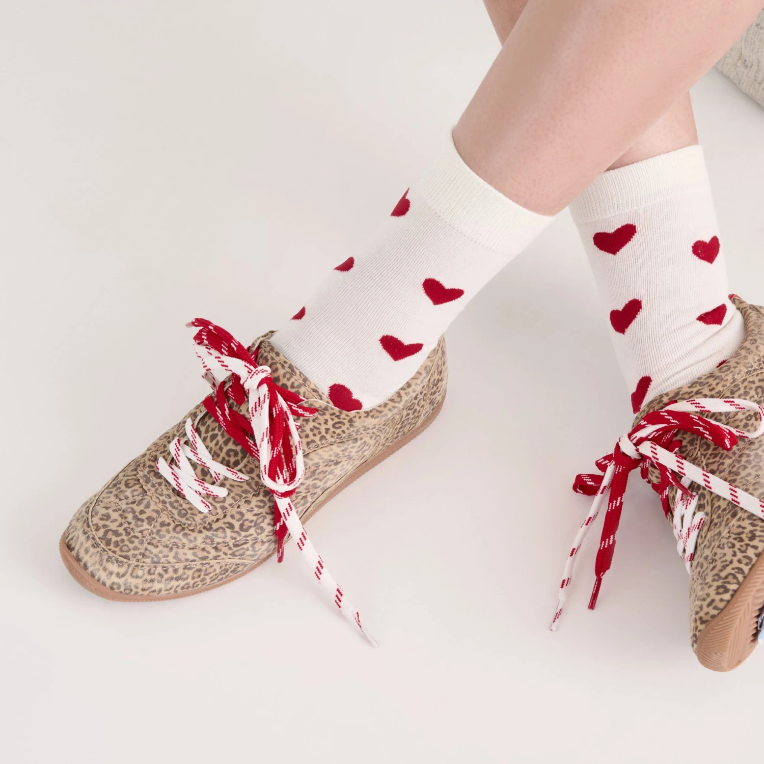 The Hearts Crew Socks are equal parts cozy and cute, with a pop of playful romance. Bold red hearts are all over for a sweet standout you’ll want to wear on repeat.