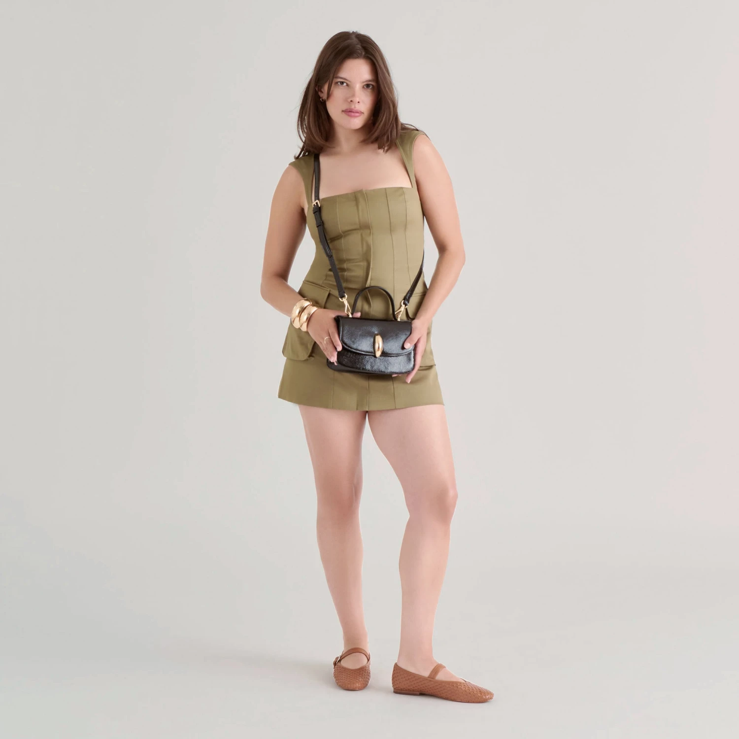 An elevated crossbody that dresses up or down. LUCIA’s luxe structured look with a chic handle and gold metal detailing pairs well with a dress and heels and denim and boots.