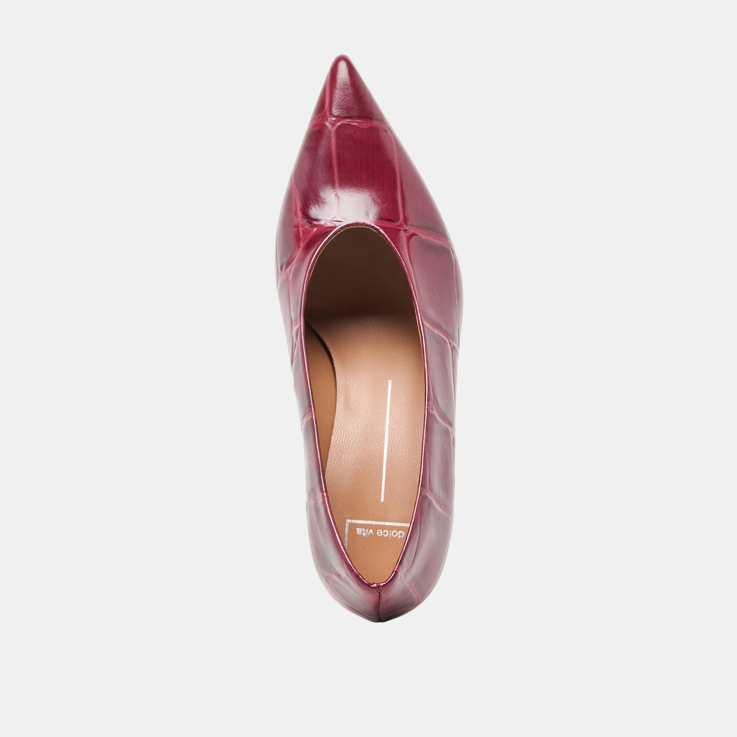 Luxe Italian-crafted materials blend with retro design details in MIDGE. This pointed toe heel features bold croc embossed leather in trend-forward burgundy. Let this statement style shine with sophisticated work looks and cold weather dresses.