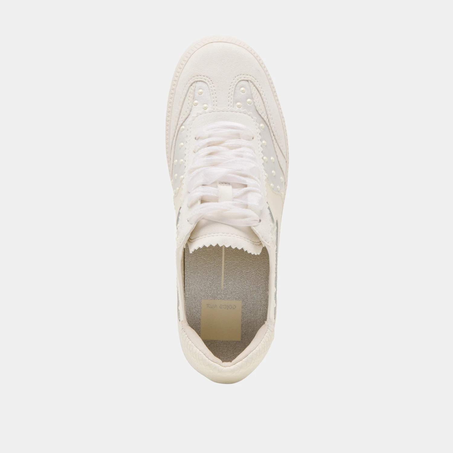 Our favorite comfy classic, now in dreamy off-white satin. NOTICE PEARL’s embellishments are impossible to miss. These sneakers feature delicate organza laces and are beautifully adorned with pearls, adding a touch of elegance to their timeless design.