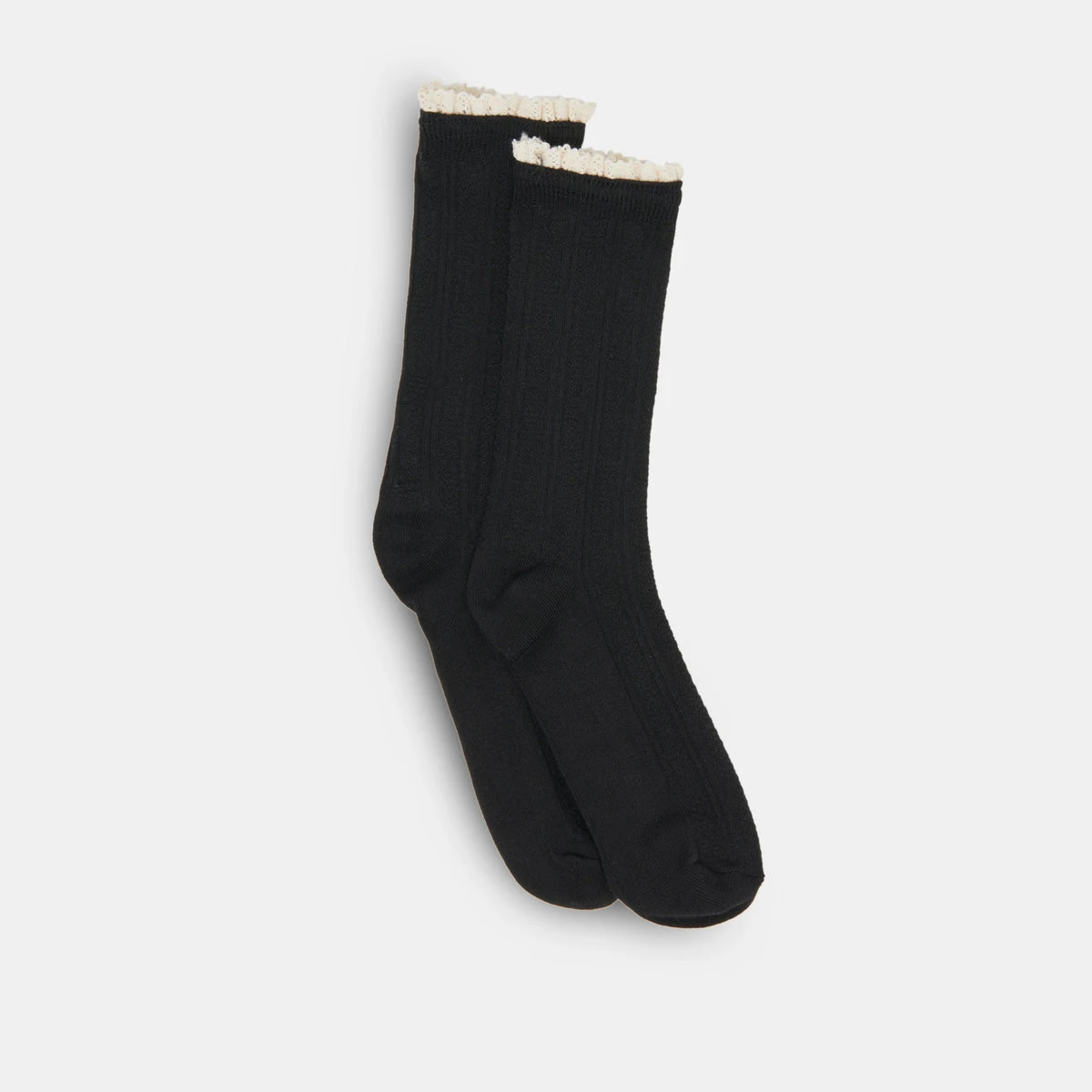 Add a touch of timeless romance with our Prairie Socks, featuring delicate lace ruffle for an effortlessly elegant look. This two-pair set—one in deep burgundy, the other in classic black—brings a soft, vintage-inspired charm to any outfit.