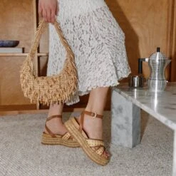 REYES CRYSTAL BALLET FLATS MID BROWN MESH(Reyes Crystal Ballet Flats Mid Brown Mesh)