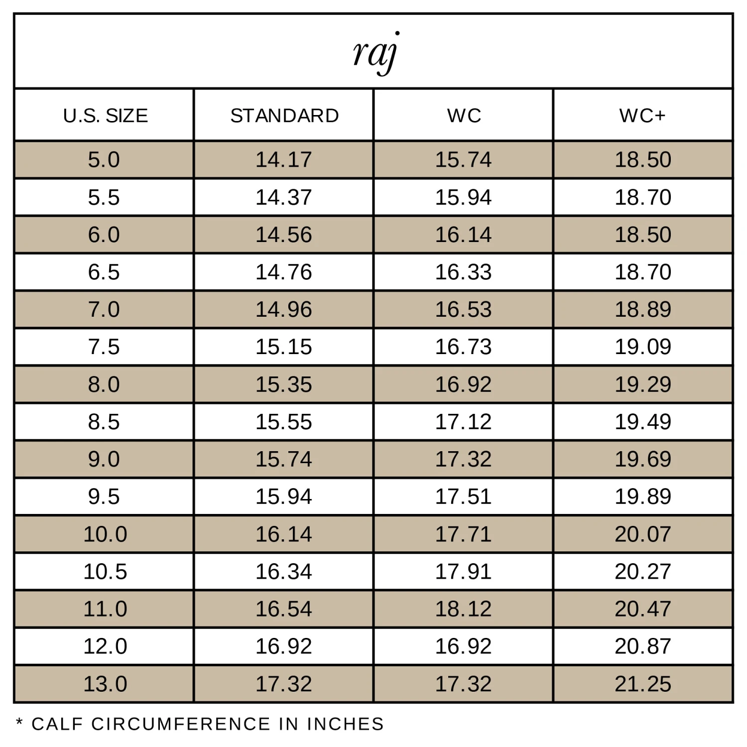 - Please refer to RAJ size guide in image position 5 for individual calf size measurements.