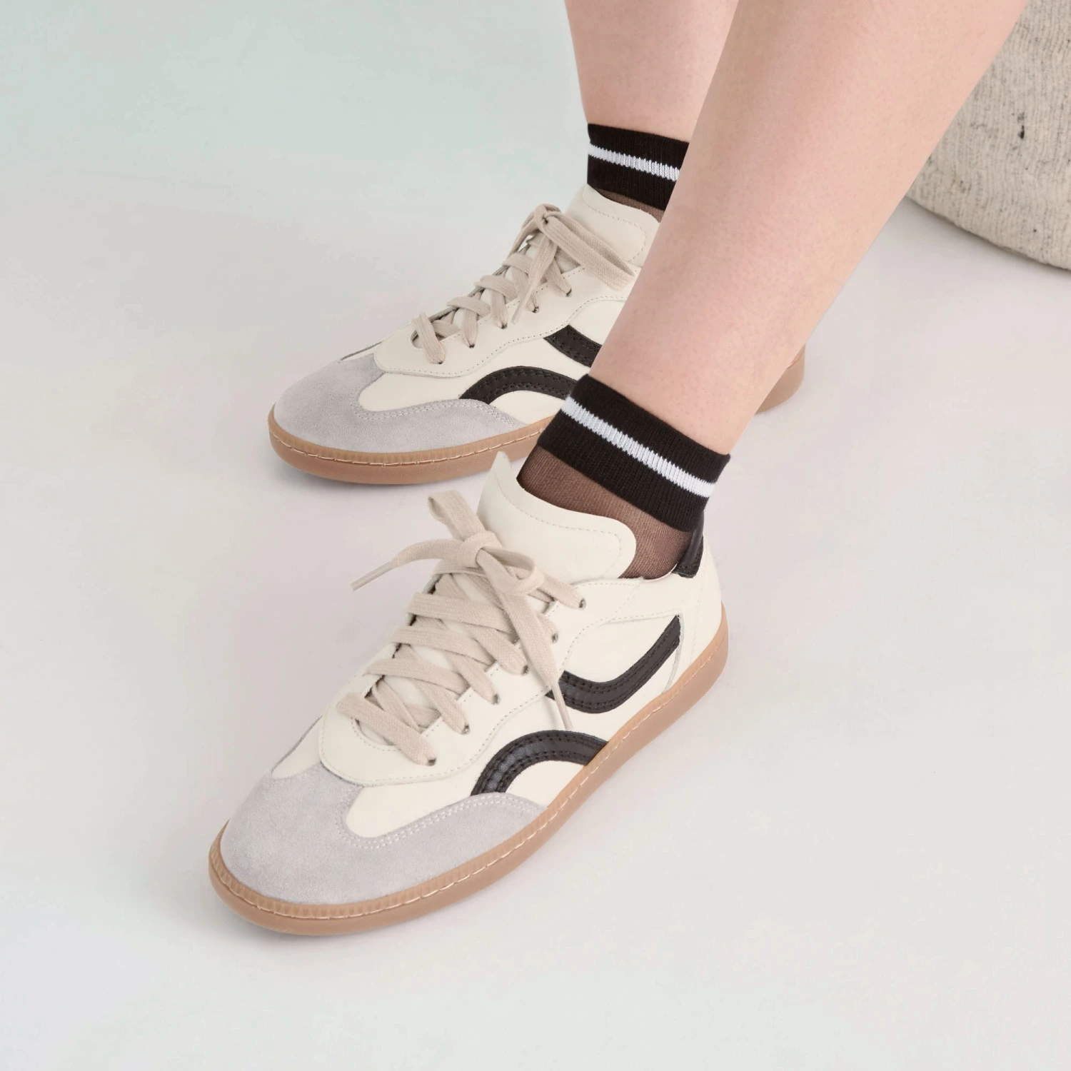 - Sheer Ankle Sock with Striped Cuff