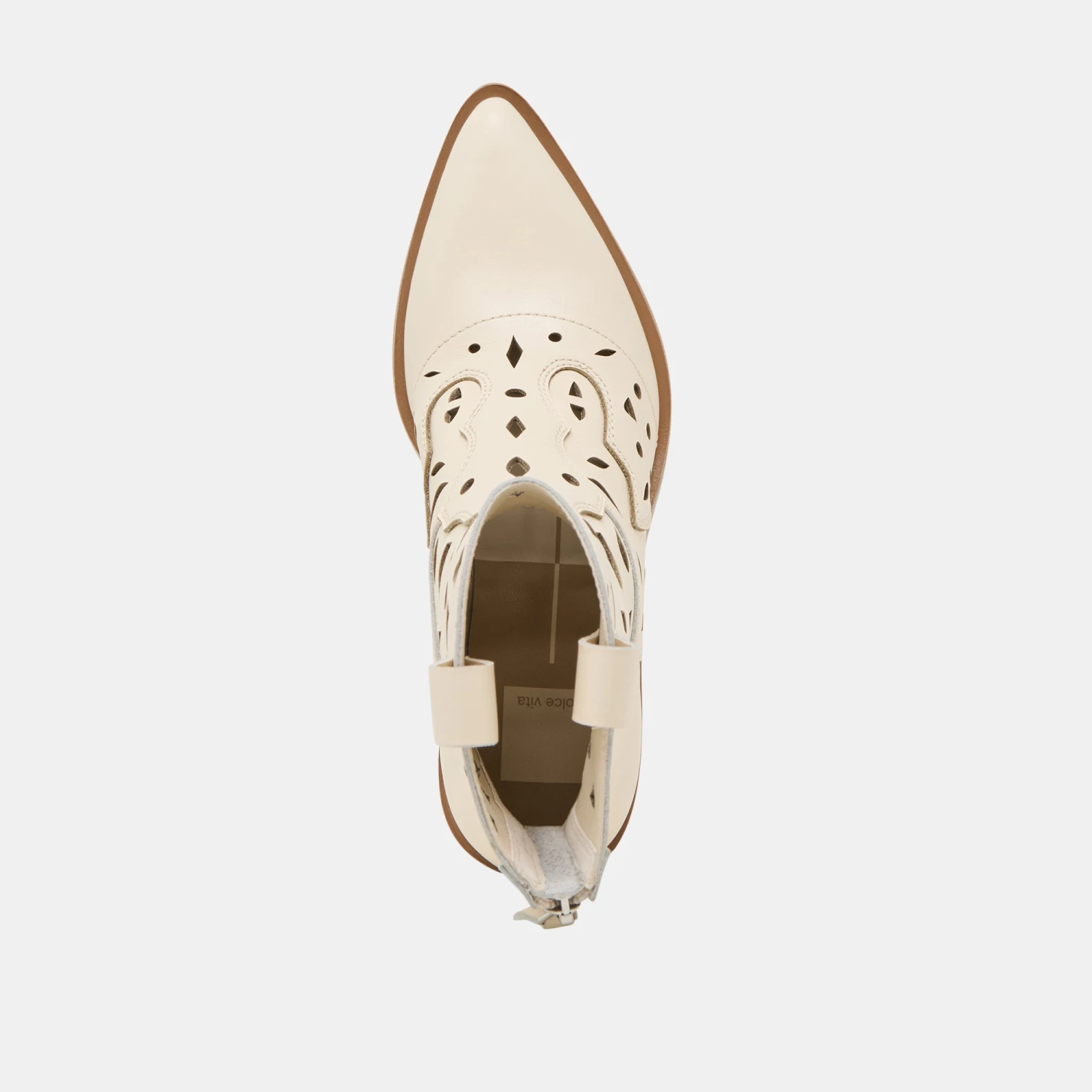 A classic western silhouette with modern geometric cutouts make ZENOBI the ideal spring/summer boot. Her mid-height heel and pointed toe make for a polished, yet, comfortable wear. Show this stunner off by styling with a dress or denim cutoffs.